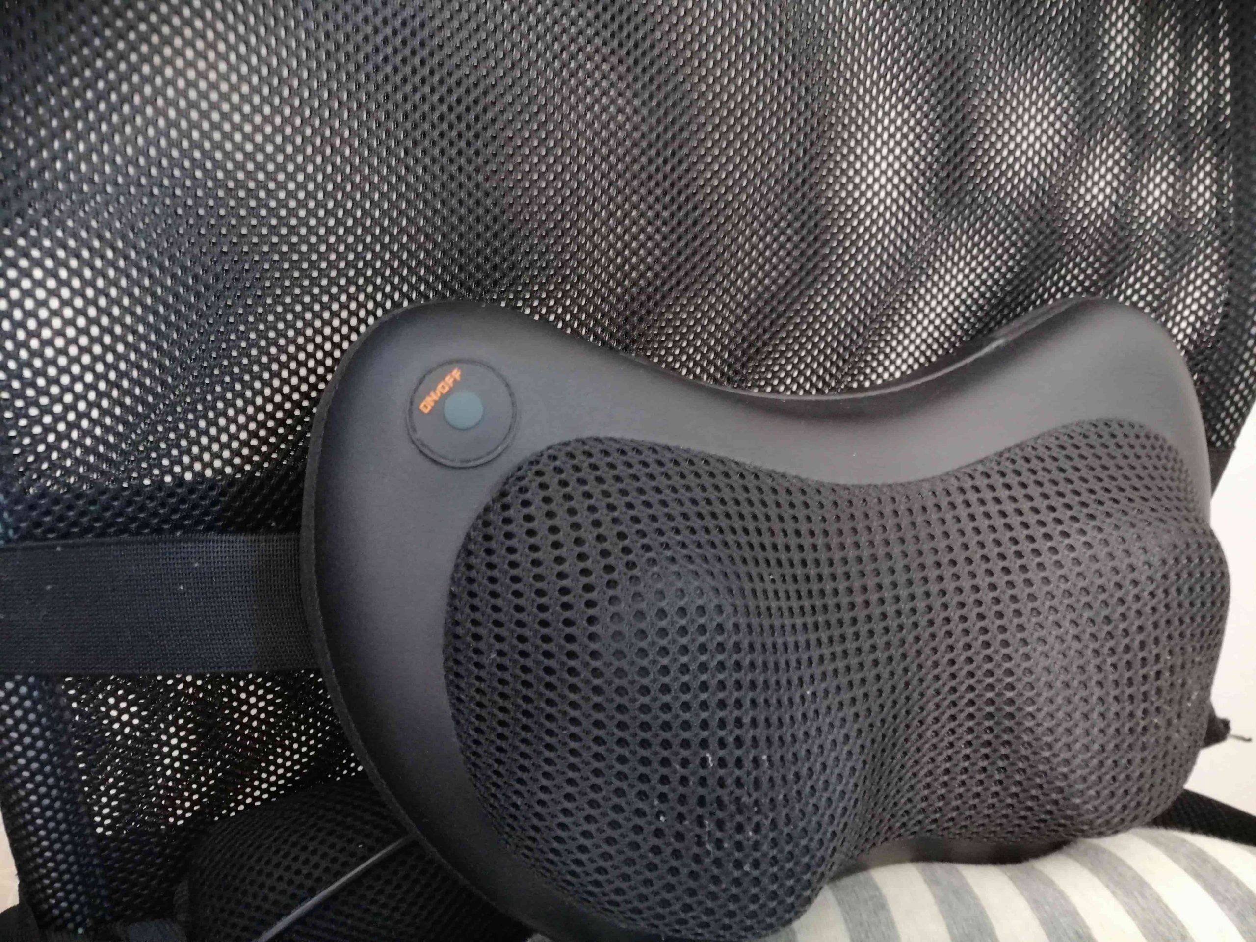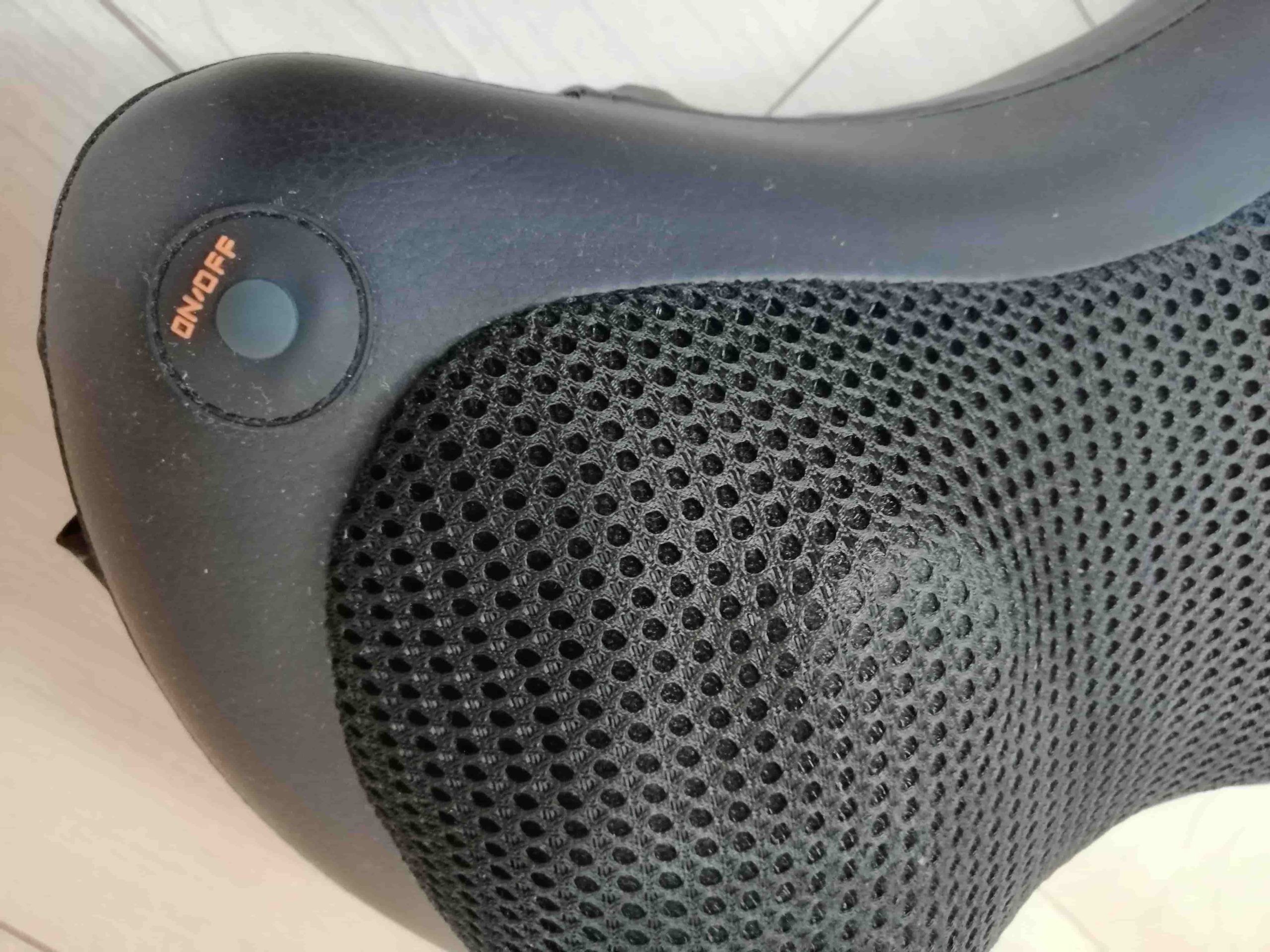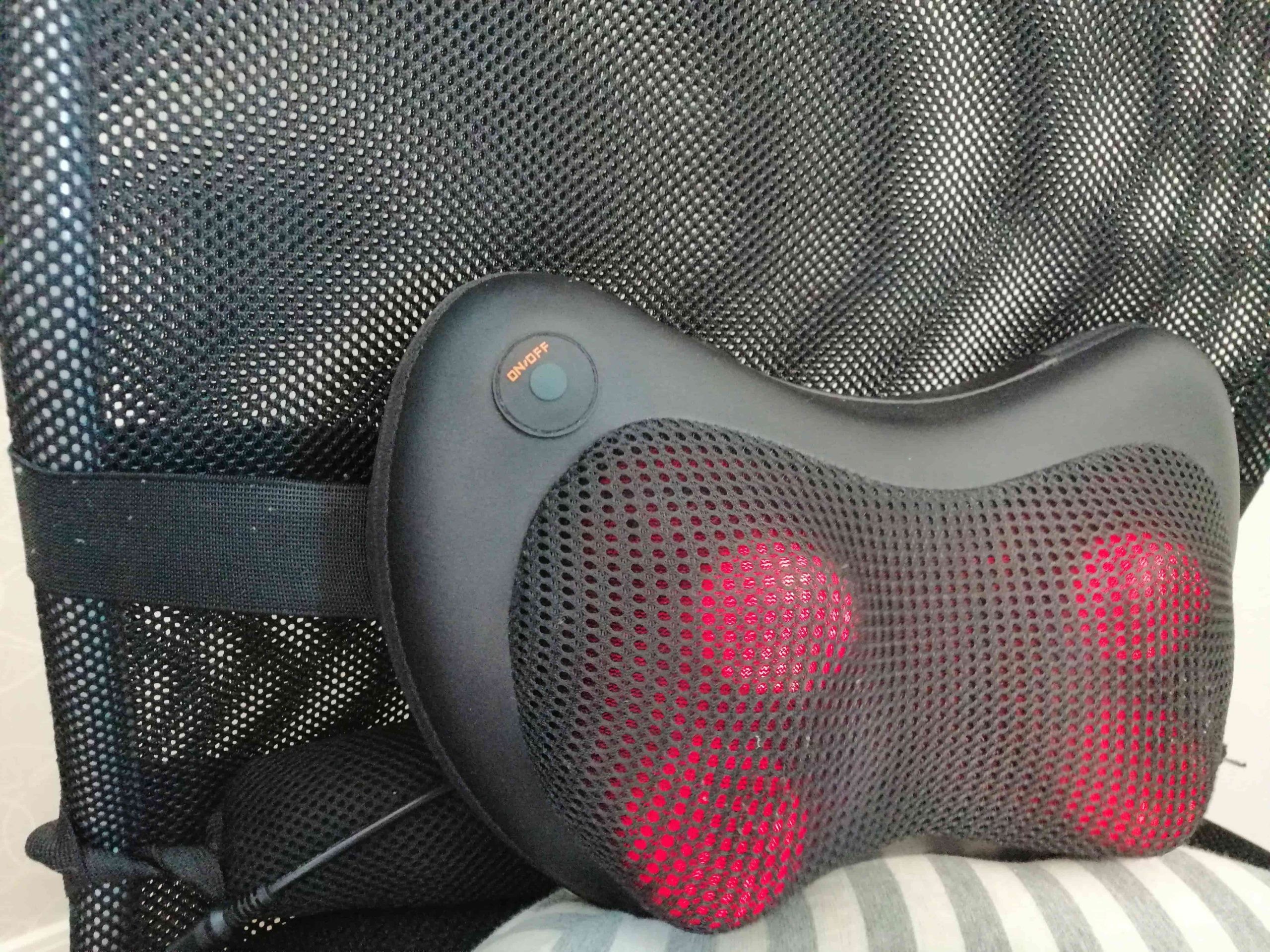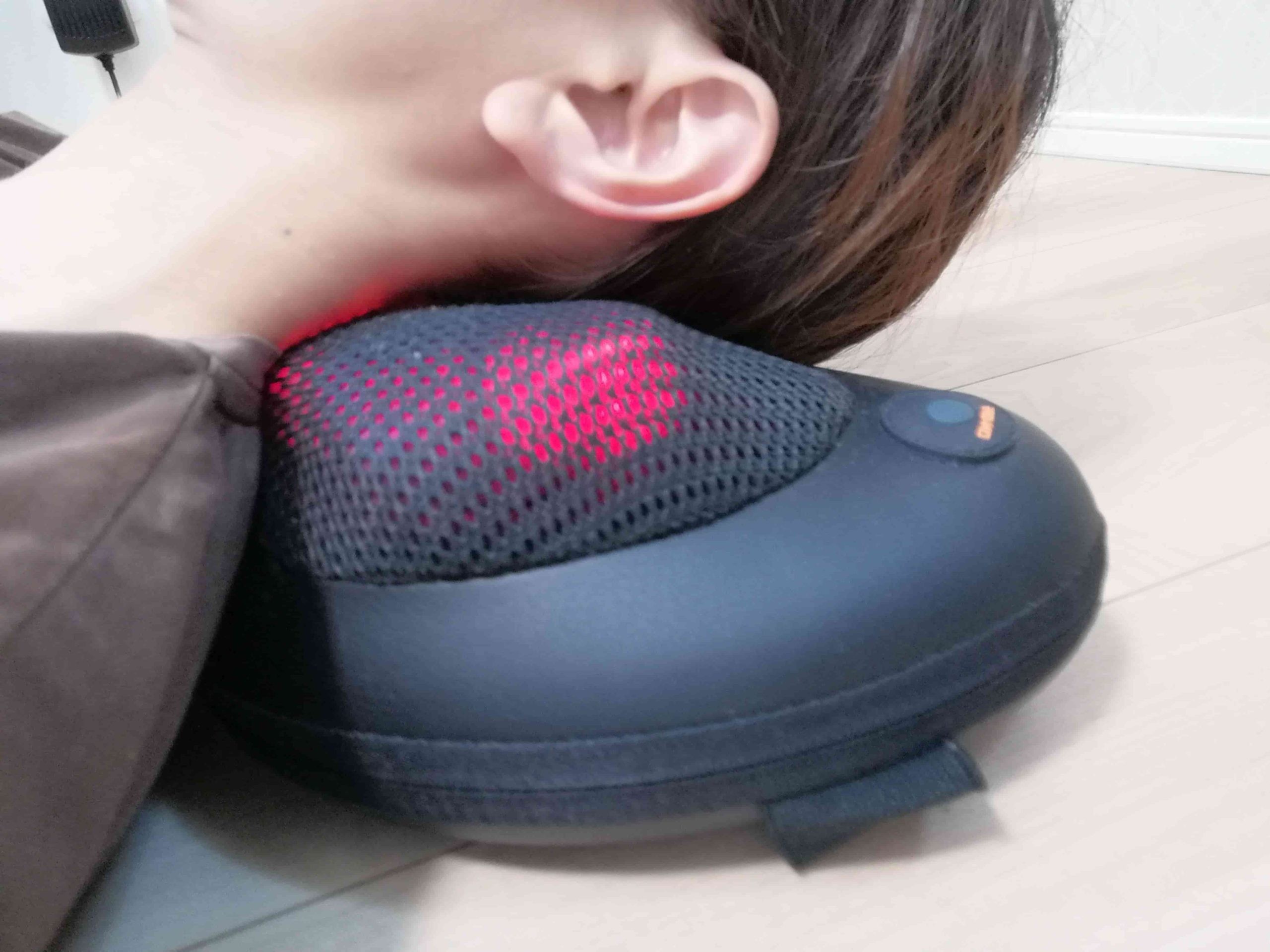 人間工学に基づいてつくられたデザインなので首筋〜肩のカーブにちょうどフィット、暖かいもみ玉がゴリゴリと首〜肩もみほぐしてくれます。