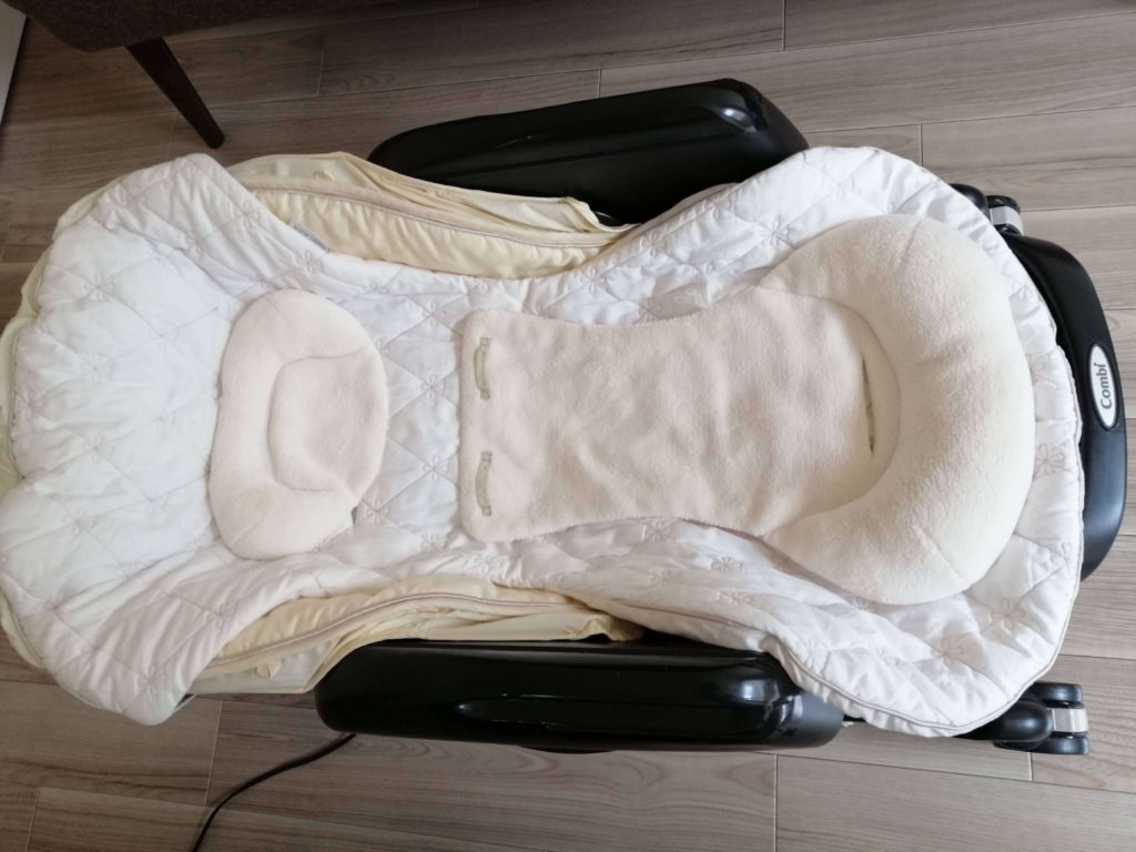 我が家は出産前に電動ラックを1つ、出産後にもう1つ買いました。高い出費でしたが…少し泣いたり、ミルクを飲んだ後はラックに乗せて自動でユラユラするだけで寝てくれたのでかなり楽でした。お兄ちゃんに踏まれない防止策にもなりました。寝返りを始めた6ヶ月頃まで使用しました。あ!1つ注意点!クッションの下のカバーを時々洗いましょう!クッションの上にタオルを敷いて使用していた我が家、タオルやクッションはまめに洗いましたが、カバーはおざなりに…気が向いて洗おうとしたらカビが生えていました。。赤ちゃんは汗をたくさんかいて蒸れやすいので注意です!こまめに洗いましょう!