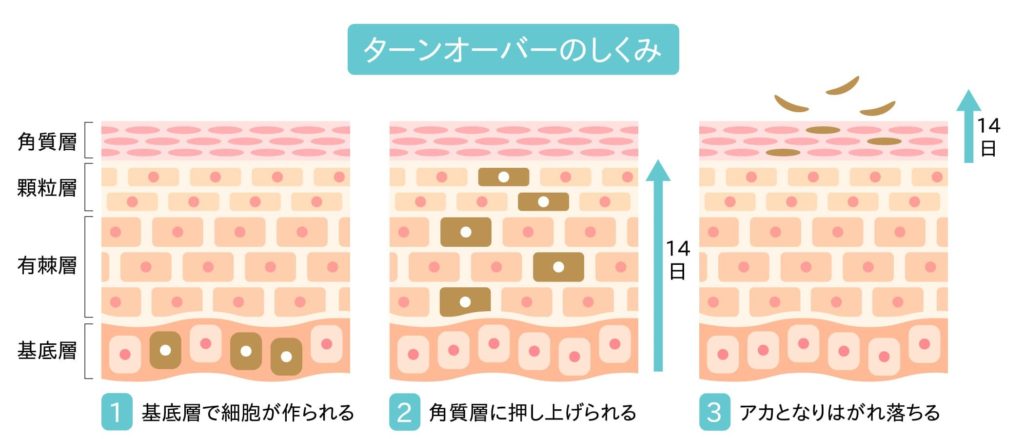 表皮の中でも一番外側にある「角質層」は死んだ細胞が10~20層にも連なってできており、肌の表面に留まっています。