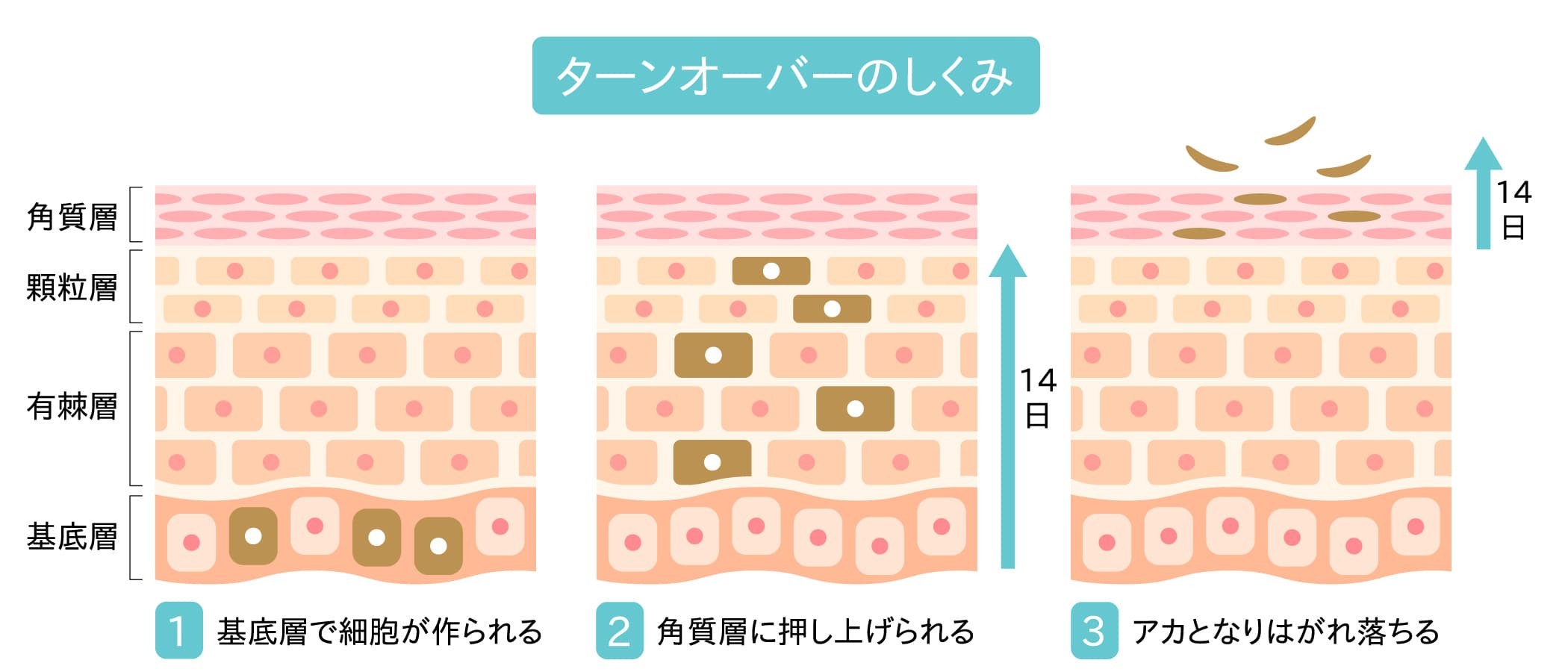 以下の図を見ても角質層は細胞の最終的に行きつく場所であることがわかります。