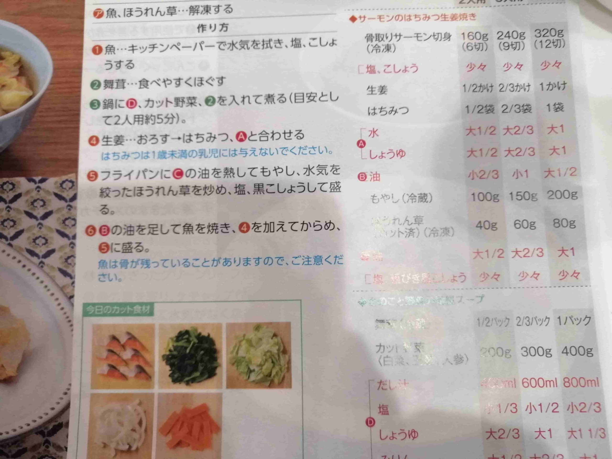 その日の配達と一緒にレシピも入っていると思った私は少し焦りました。